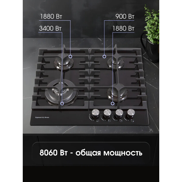 Встраиваемая газовая варочная панель Zigmund & Shtain MN 185.61 B предназначена для приготовления и разогрева различных блюд.