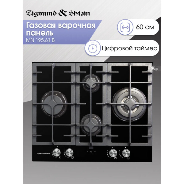 Встраиваемая газовая варочная панель Zigmund & Shtain MN 195.61 B предназначена для приготовления и разогрева различных блюд.