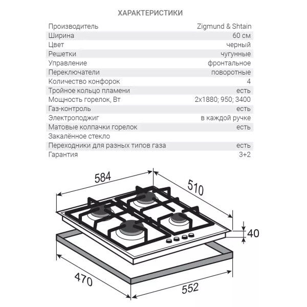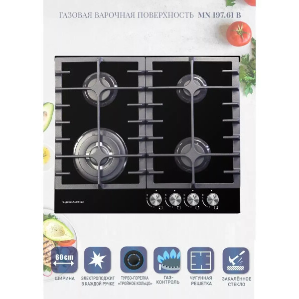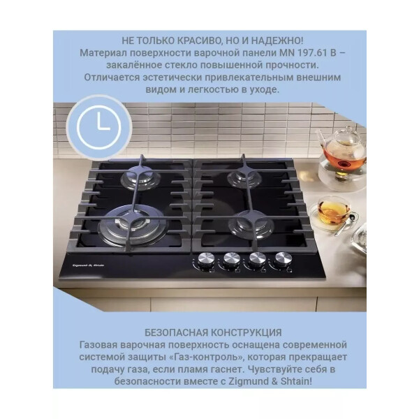 Встраиваемая газовая варочная панель Zigmund & Shtain MN 197.61 B предназначена для приготовления и разогрева различных блюд.