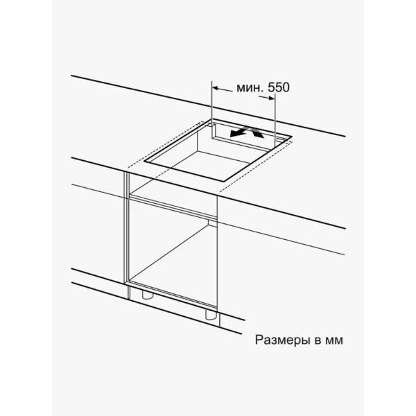 Она встраивается в нишу размером 56х50 см при высоте столешницы от 1,6 см.