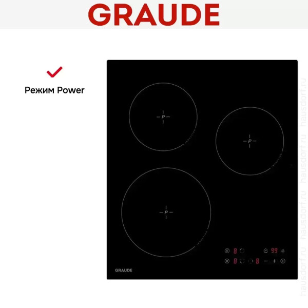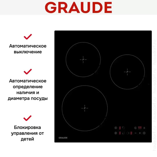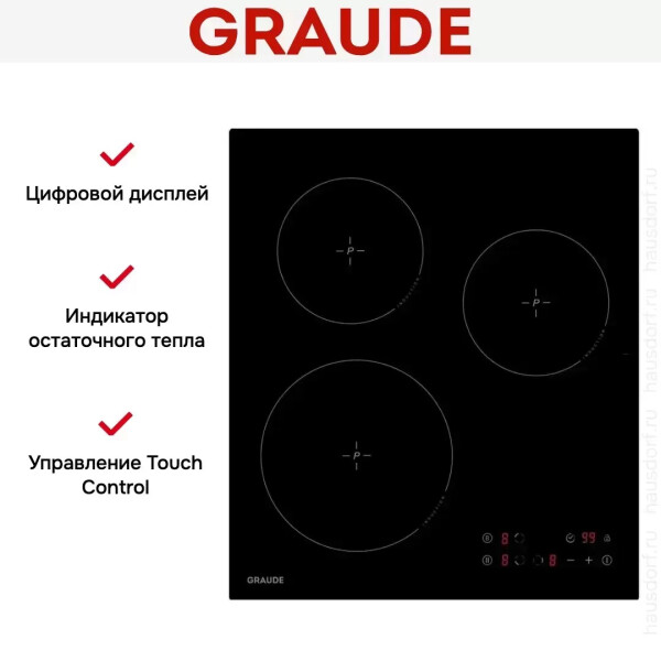 Удобное сенсорное управление упрощает настройку параметров работы прибора. Автоматическое отключение, индикаторы остаточного тепла и защита от детей обеспечивают безопасность эксплуатации.