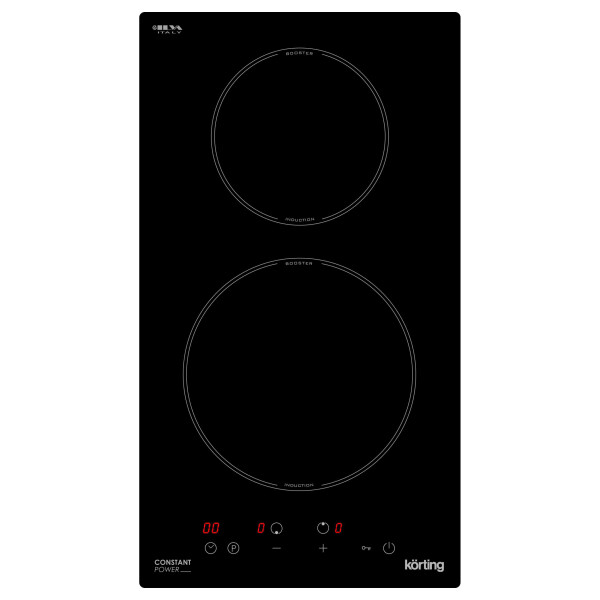 Индукционные варочные панели используют принципиально новый способ нагрева, нагрев происходит за счет электромагнитного поля и воздействует непосредственно на дно посуды, благодаря этому индукционный нагрев считается одним из самых быстрых и имеет высокий КПД. Позволяет точно контролировать температуру приготовления за счет моментального изменения мощности нагрева, что позволит приготовить разнообразные кулинарные блюда. Поверхность индукционных панелей нагревается только от посуды и по этой причине нагревается не очень сильно, быстро остывает в выключенном состоянии, что снижает риск получения ожогов и способствует легкому уходу за панелью. Вам достаточно одного прикосновения для включения зон нагрева, выбора уровня мощности или зоны нагрева. Ошибка при включении абсолютно невозможна благодаря световой индикации и продуманному расположению сенсорных кнопок. Функция Booster кратковременно повышает мощность конфорки примерно на 15 % и позволяет достичь особо быстрого нагрева больших объемов жидкости или быстрее разогреть посуду до нужной температуры, что бы приступить к приготовлению, благодаря этому вы сможете гораздо быстрее приготовить любимое блюдо. Korting подумал о безопасности ваших малышей на кухне!