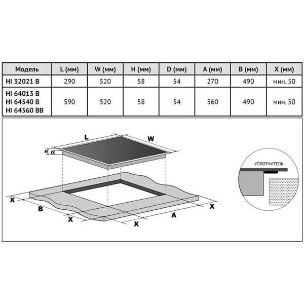 Размеры встраивания (ВхШхГ) (мм): 30x560x490