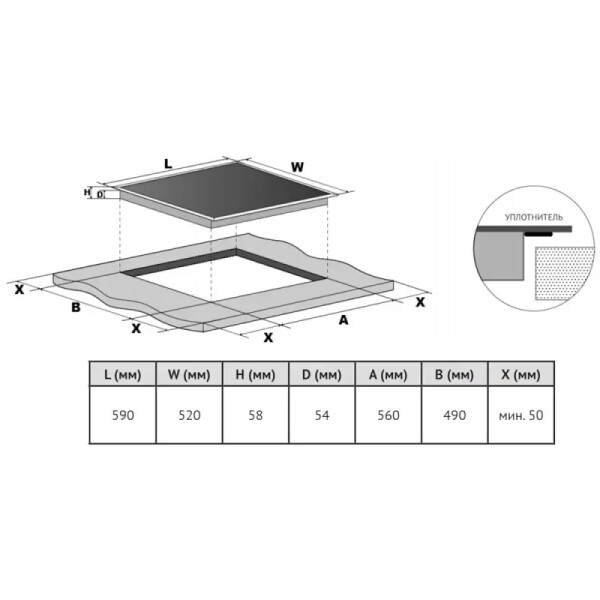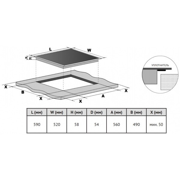 | Ширина встраивания | 56