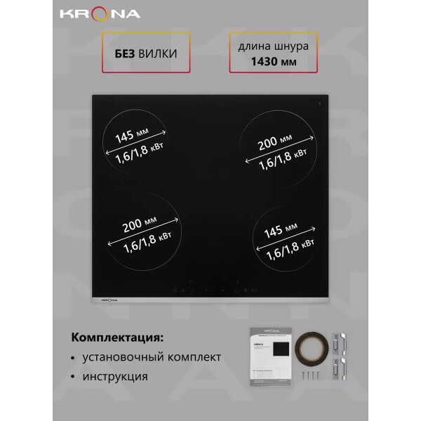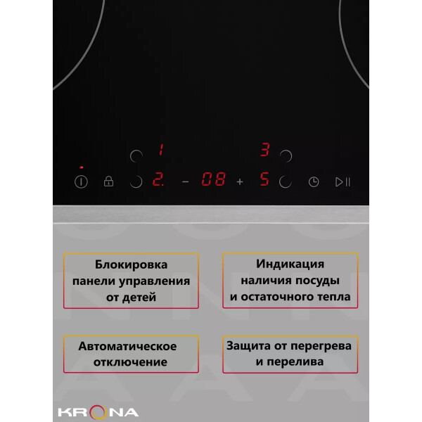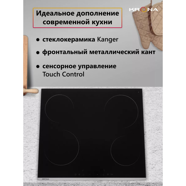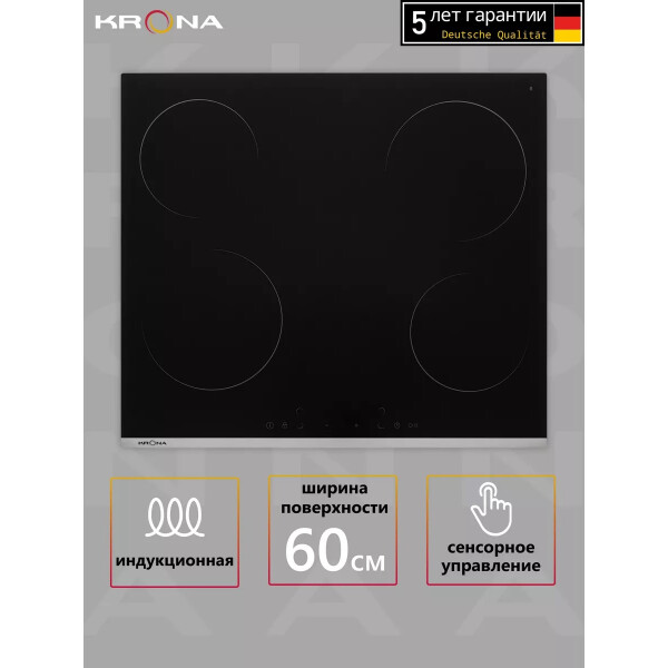 Индукционная варочная панель GRUND шириной встраивания 60 см станет идеальным решением для кухонь, выполненных в современных стилях. Модель оснащена 4 зонами индукционного нагрева с усилителем нагрева Booster, таймером автоматического отключения. Для безопасной эксплуатации варочной панели предусмотрена блокировка управления, защита от перелива и перегрева, а также датчик определения посуды, благодаря которому нагрев зоны не начнется, если на ней нет подходящей посуды.
