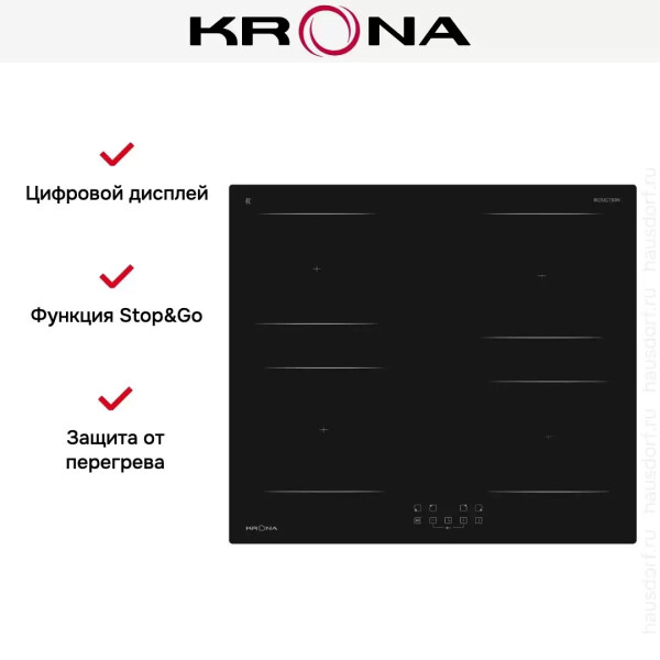Модель оснащена 4 зонами индукционного нагрева, функцией паузы Stop&Go, таймером автоотключения.