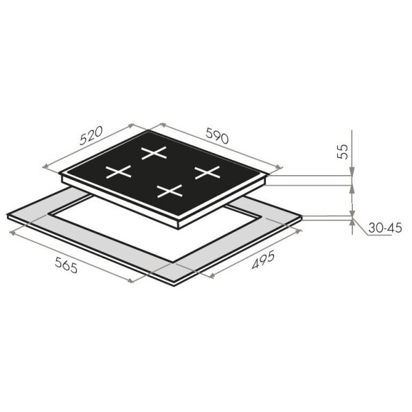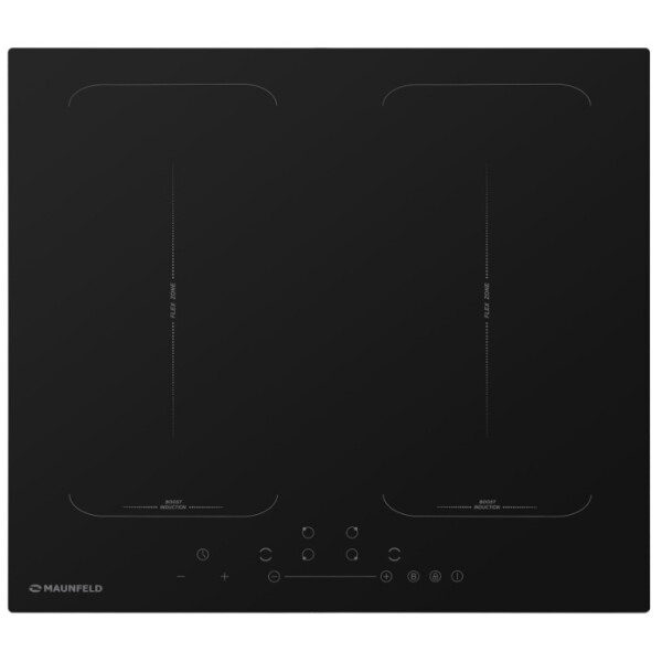 Maunfeld EVI.594-FL2-BK — это индукционная варочная панель на четыре конфорки с режимом бустера на каждой. Материал поверхности — стеклокерамика чёрного цвета. Левые и правые конфорки попарно объединены в две расширенные зоны нагрева. Есть защита от детей, автоматическое отключение и блокировка всех элементов в случае мокрой поверхности.