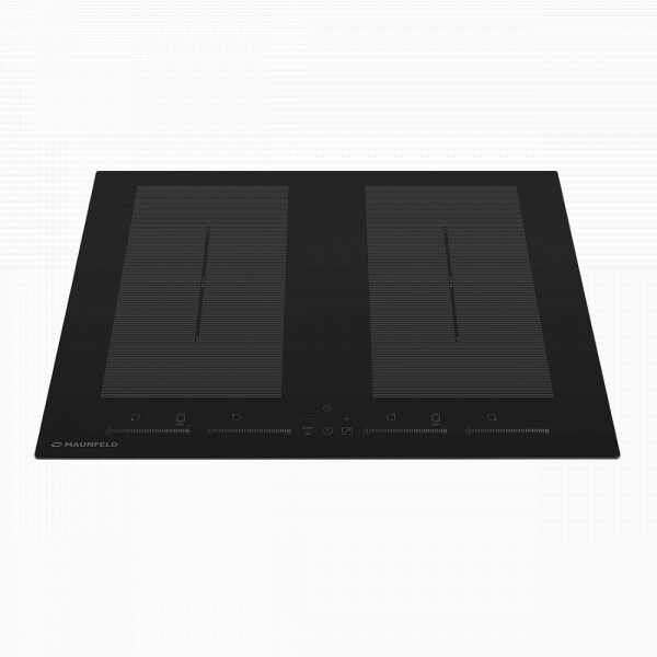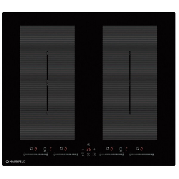 Maunfeld EVI.594.FL2(S)-BK это индукционная варочная панель на четыре конфорки. Благодаря технологии FLEX INDUCTION левые и правые зоны нагрева можно попарно объединять в мосты. Функция Бустер действует как для каждой конфорки, так и для зон расширения. Управление осуществляется посредством сенсорного слайдера. Предусмотрен таймер и детектор диаметра посуды. Есть защита от детей и блокировка всех элементов в случае мокрой поверхности.
