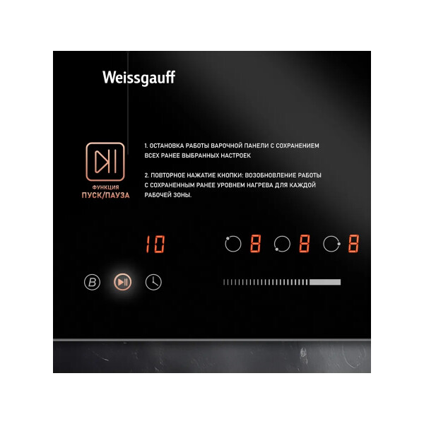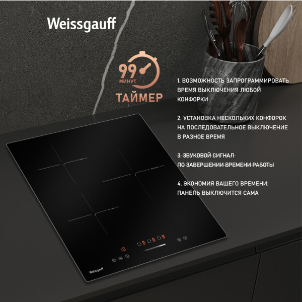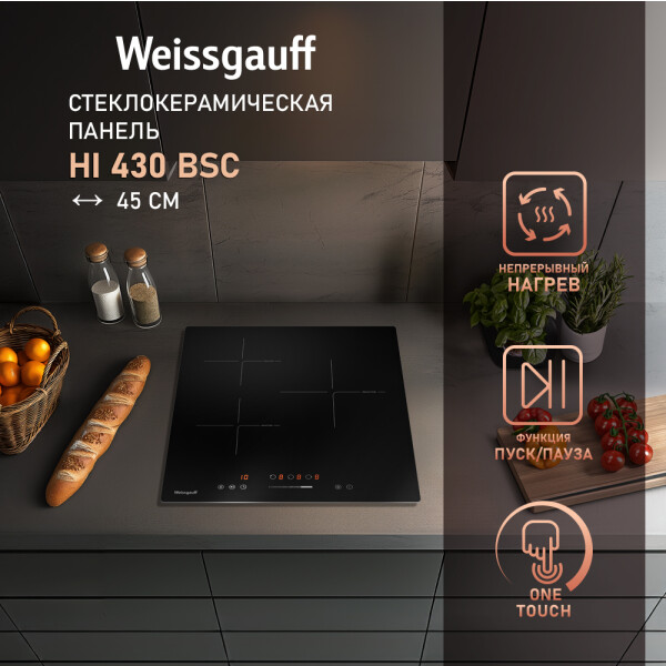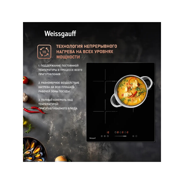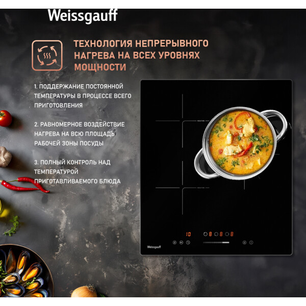 Индукционная панель Weissgauff с особым дизайном конфорок Cross-Zone и непрерывным нагревом выводит на новый уровень понимание того, насколько эффективной может быть компактная индукционная варочная поверхность шириной всего 45 см!