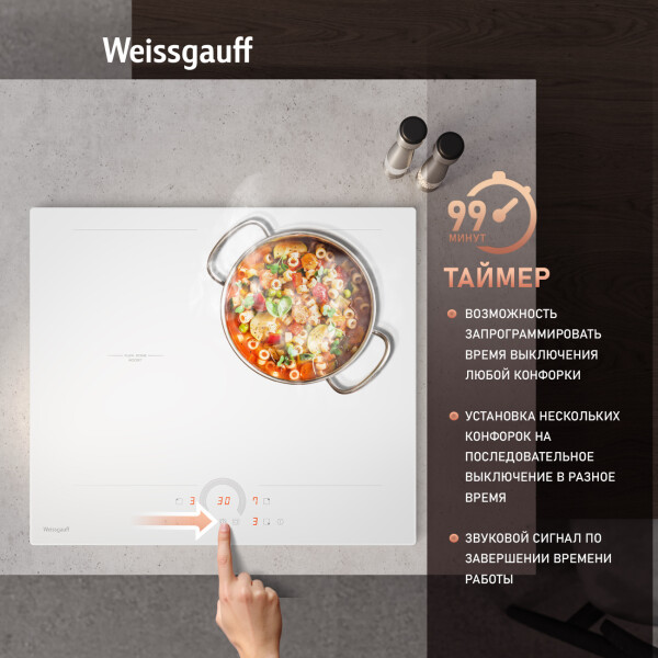 Современный элемент управления, выполненный в виде дуги и выводящий удобство работы с вашей варочной панелью на новый уровень! Выставляйте необходимый вам режим мощности одним касанием, плавно и легко настраивая работу каждой из конфорок.
