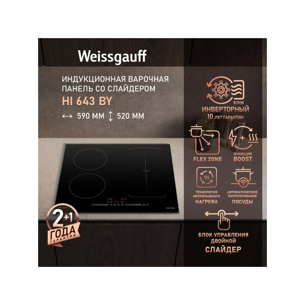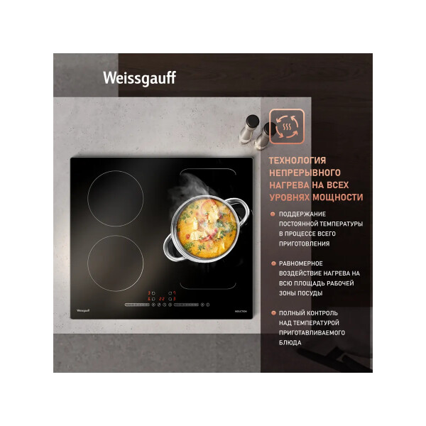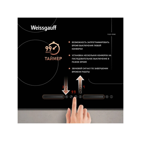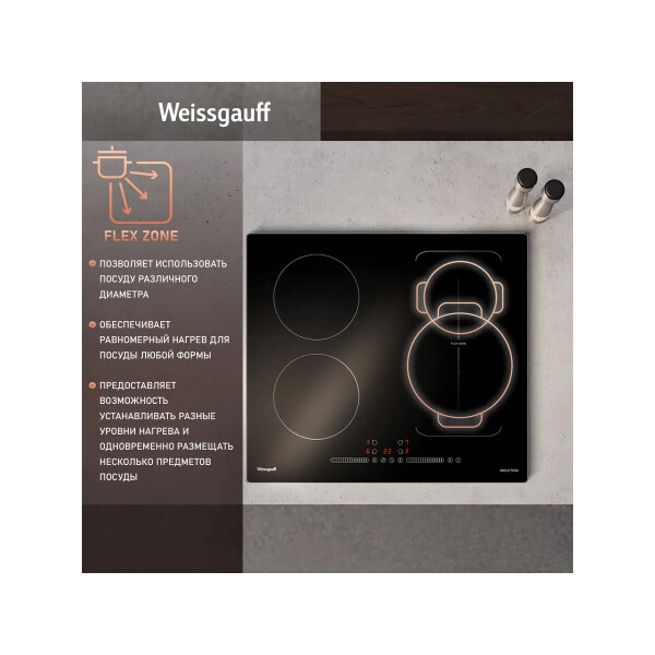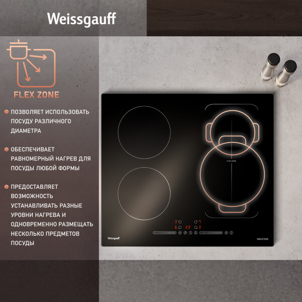 Индукционная панель Weissgauff, имеющая в своей основе сочетание свободной зоны Flex Zone и двух независимых конфорок, а также оснащенная раздельной системой слайдерного управления Multi Touch - это новое слово в удобстве приготовления еды на вашей кухне!