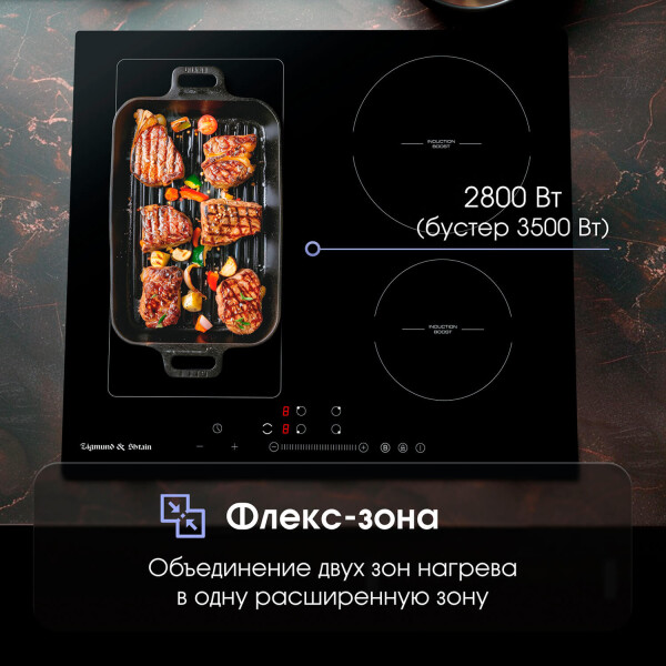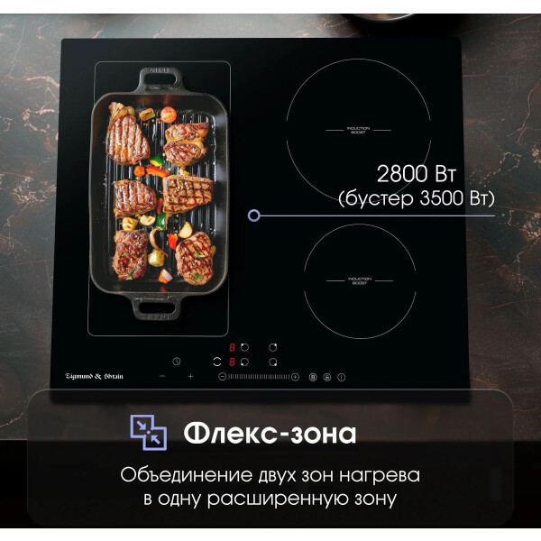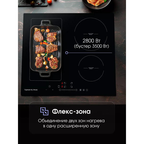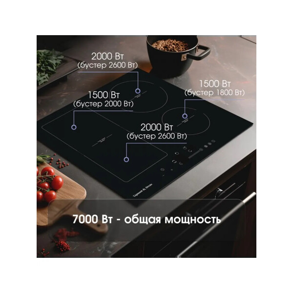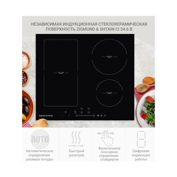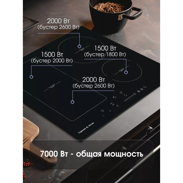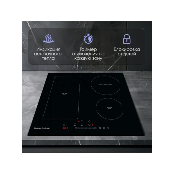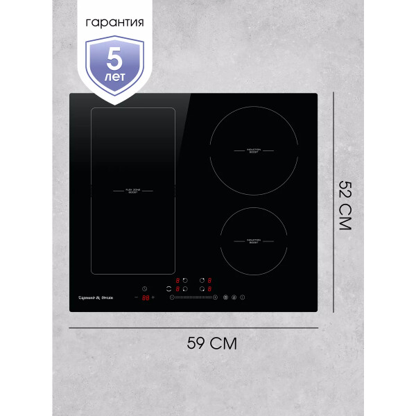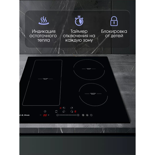 Индукционная варочная панель совершенна и с точки зрения дизайна и с точки зрения возможностей. Плюс ко всему она индукционная. Преимущества индукционного нагрева на лицо: нагревается посуда, а не сама панель, следовательно об такую поверхность невозможно обжечься. Каждая конфорка имеет таймер с отключением , индикацию остаточного тепла, блокировку от детей. В целях безопасности так же имеется защита от перегрева, перелива и случайного старта.