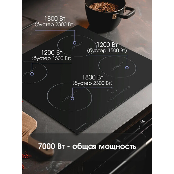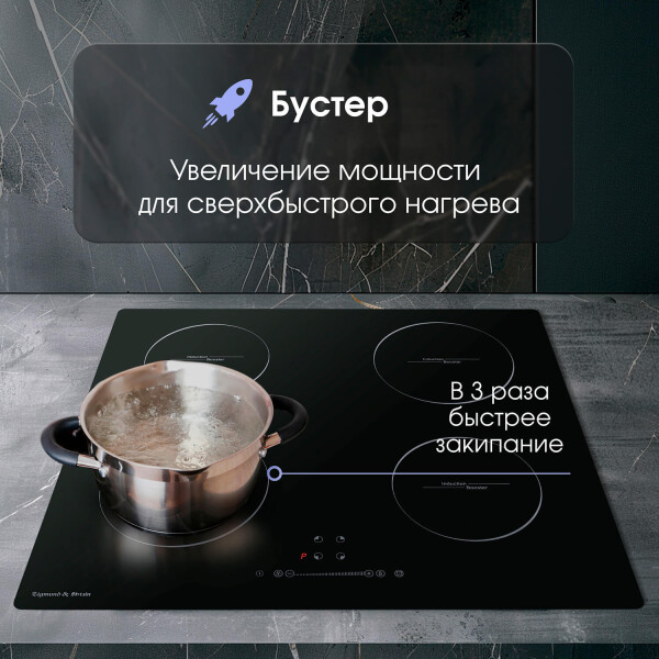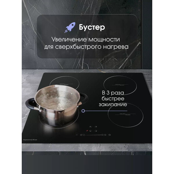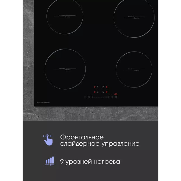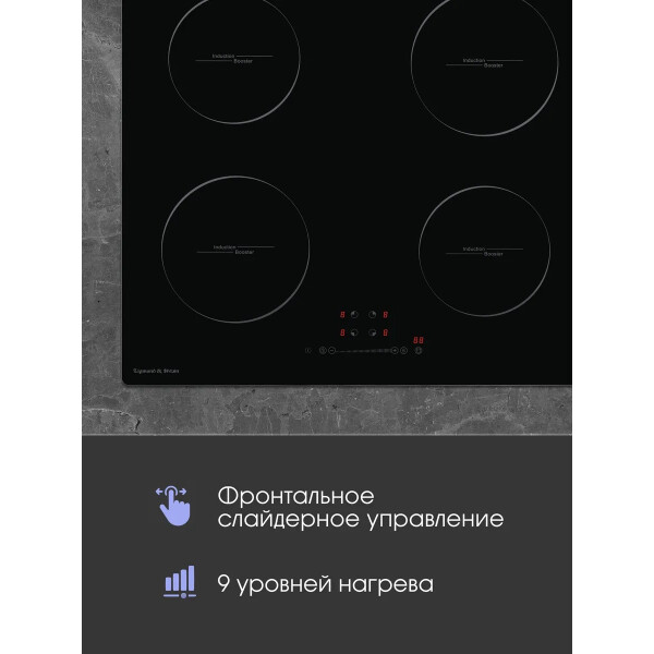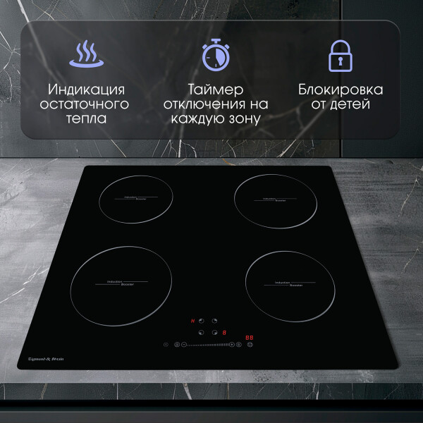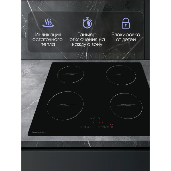 Блокировка кнопок препятствует случайному изменению настроек. За счет специальных датчиков модель самостоятельно прекращает работу при перегреве, переливе жидкости и длительном использовании. Индикация остаточного тепла оповещает об остывании конфорки.