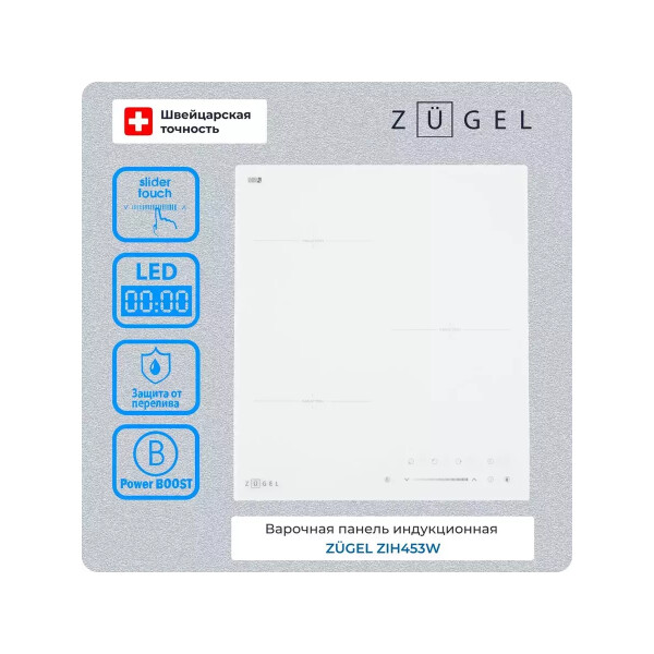 Варочная панель ZUGEL ZIH453W, исполненная в белой стеклокерамике EuroKera (Франция) - это идеальное сочетание недорогой цены и расширенных возможностей в одной модели.