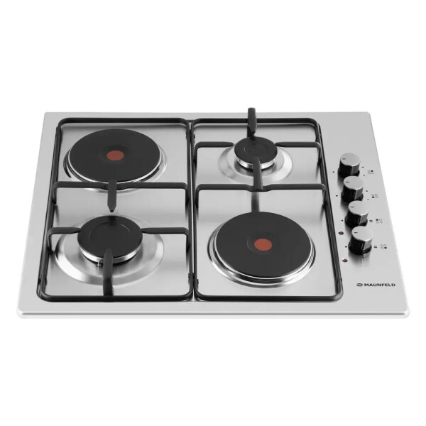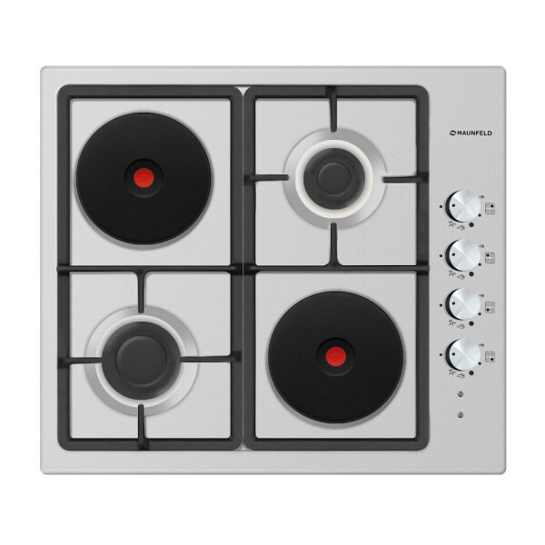 4 конфорки (2 газовые, 2 электрические 180 мм) с механическим управлением.
