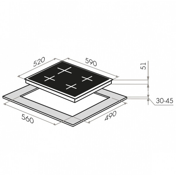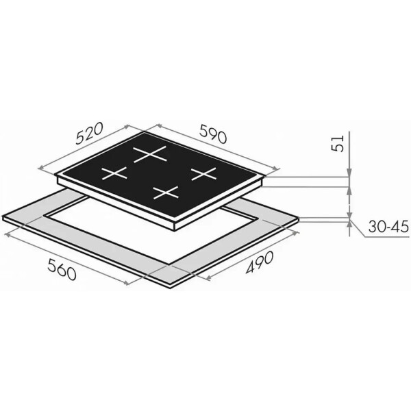 Комбинированная варочная поверхность с независимый типом установки, оснащена боковыми поворотными переключателями.