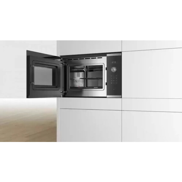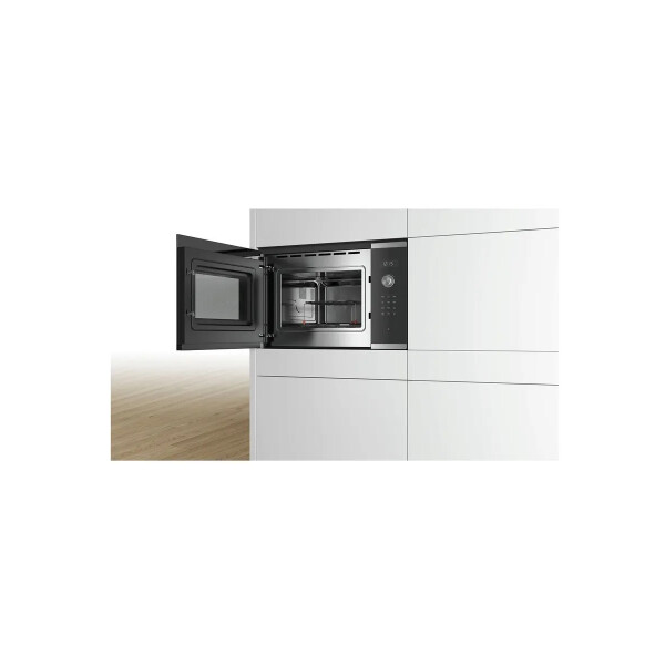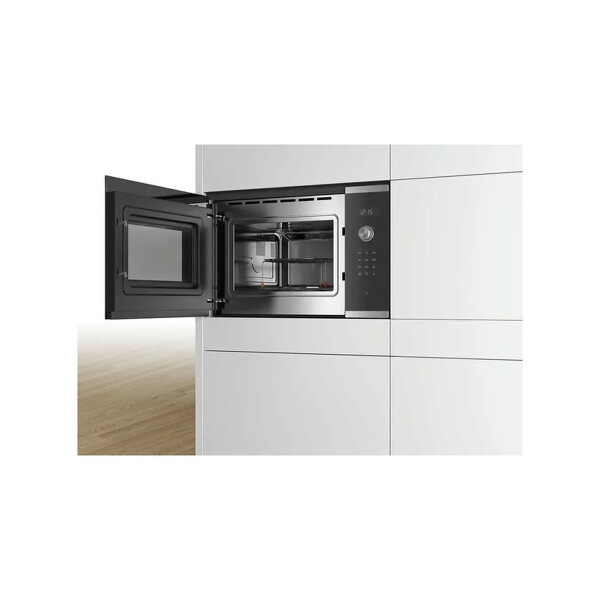 Микроволновая печь Bosch BEL554MS0 выполнена в черном цвете с элементами из нержавеющей стали и предусматривает в себе 5 режимов, с помощью которых можно подобрать оптимальный уровень мощности для разморозки, подогрева или приготовления любых продуктов. Сенсорная панель управления поможет быстро и точно настроить работу устройства. Автоматическое отключение и система охлаждения гарантируют безопасность эксплуатации.
