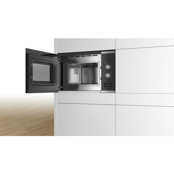 Встраиваемая микроволновая печь Bosch BFL520MS0 оснащена поворотными элементами управления, с помощью которых можно быстро и удобно настроить работу прибора. 5 режимов с разной мощностью позволят подобрать оптимальные условия для любых продуктов. Дверца открывается простым нажатием на кнопку, что повышает комфорт эксплуатации.