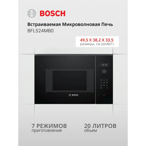 Встраиваемая микроволновая печь Bosch BFL524MB0 с 7 автоматическими программами, включая программы разморозки. LED дисплей поможет сделать приготовление пищи простым и удобным, а встроенный таймер напомнит о времени. Глубокий черный дизайн печи станет прекрасным украшением кухни.