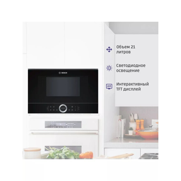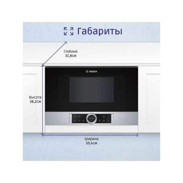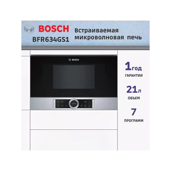 Микроволновая печь Bosch BFR634GS1 — встраиваемая модель с интуитивно понятной системой сенсорного управления и функцией AutoPilot 7. После выбора программы и примерного веса продукта прибор автоматически выберет нужную мощность.
