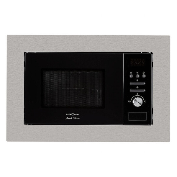 Встраиваемая микроволновая печь Krona ARGENTO 60 IX шириной встраивания 60 см выполнена в современном стиле из нержавеющей стали и черного закаленного стекла. Модель оснащена удобным управлением, 8 рецептами автоприготовления, разморозкой по весу или по времени, а также электрическим грилем. В комплекте поставки модели идут стеклянный поворотный поддон и решетка для гриля.