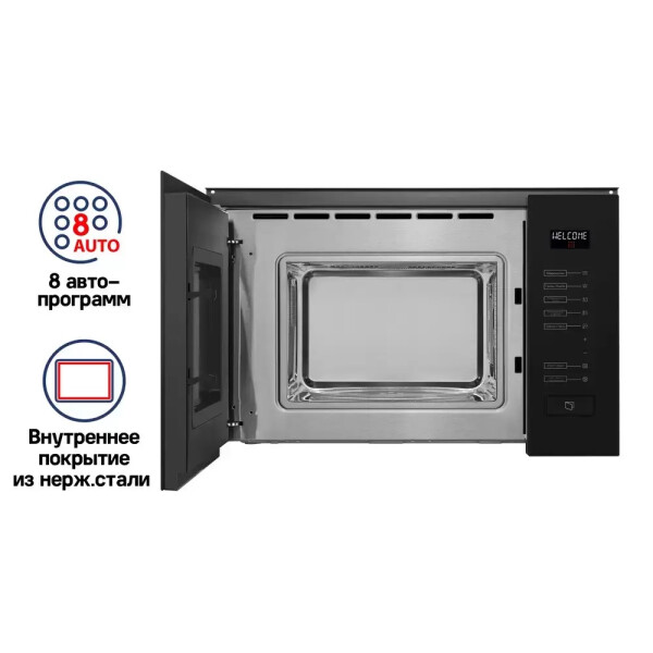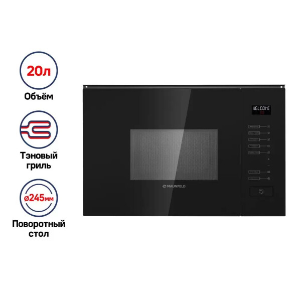 Комплектация: вращающееся кольцо, стеклянный поддон, решётка для гриля, инструкция на русском языке, комплект для установки