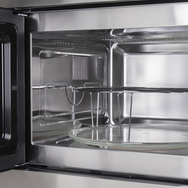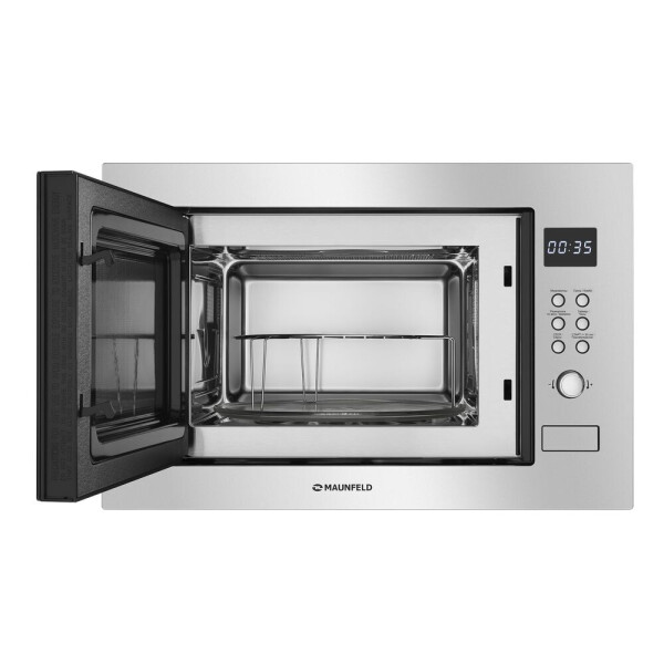 Встраиваемая микроволновая печь Maunfeld MBMO 25.8S выполнена в нержавеющей стали в комбинации с черным стеклом. Данный прибор может работать в трех режимах: микроволны, комбо (микроволны + гриль) и гриль. Так же тут предусмотрена функция быстрого старта. Чтобы маленькие повара случайно не включили СВЧ или не изменили настройки, в приборе предусмотрена детская блокировка панели управления. В микроволновой печи Maunfeld MBMO 25.8S для удобства во время ухода и контроля приготовления пищи предусмотрено освещение.