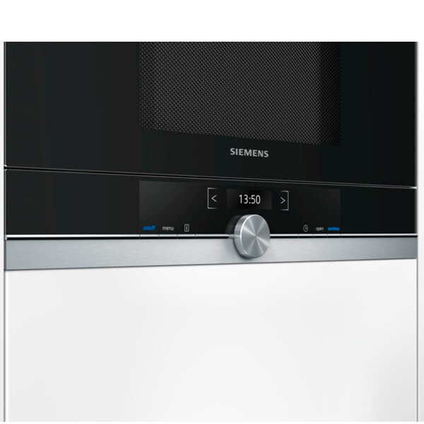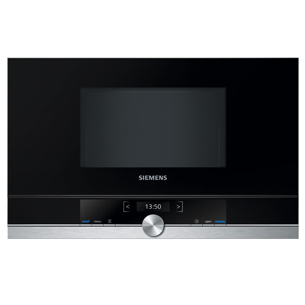 Встраиваемая микроволновая печь Siemens BF 634LGS1 — дизайн и практичность. Сочетание поверхности из нержавеющей стали и черного стекла смотрится стильно и современно. Светодиодная подсветка обеспечивает оптимальный обзор внутреннего пространства.