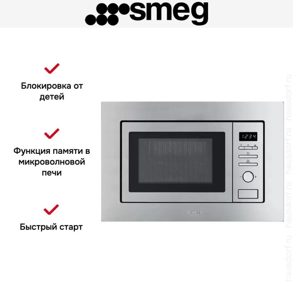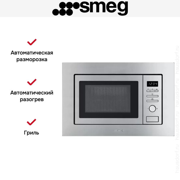 Микроволновая печь Smeg FMI020X выполнена из нержавеющей стали с покрытием против отпечатков пальцев, что позволяет надолго сохранять безупречный внешний вид модели. Наличие 5 уровней мощности микроволн помогает подобрать оптимальный режим для приготовления.