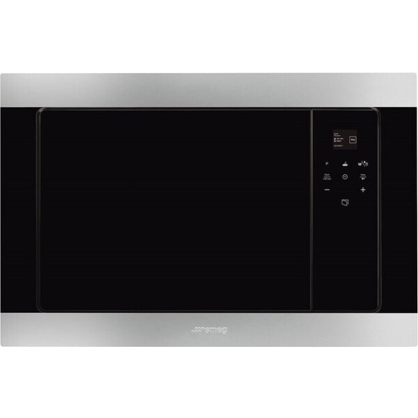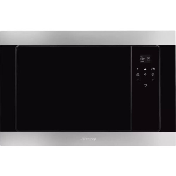 Микроволновая печь Smeg из серии Classica устанавливается в нишу с помощью специальной рамки, которая идет в комплекте. Для разогрева и приготовления в камере есть поворотный стол диаметром 25 см и решетка. В вашем распоряжении 3 автоматические программы, кварцевый гриль можно готовить только с помощью интегрированных микроволн, а также в комбинированном режиме гриль+микроволны. Сенсорная панель управления и дисплей с понятными значками для каждого режима.