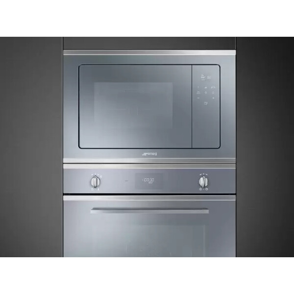 Микроволновая печь Smeg MP322X1 представлена в цвете нержавеющая сталь с черным стеклом Eclipse. Обработка против отпечатков пальцев сделает уход за внешним видом модели простым и быстрым. На двойном LED-дисплее отображаются выбранные режимы и происходящие в камере процессы, что увеличивает комфорт эксплуатации. Тангенциальное охлаждение гарантирует безопасность использования оно не только не дает нагреваться прибору, но и защищает от жара поверхности, которые соприкасаются с устройством.