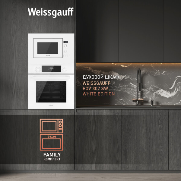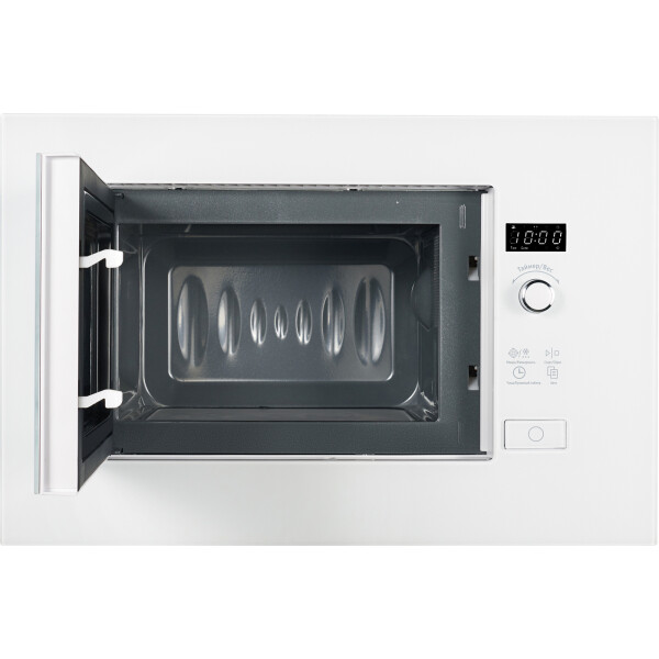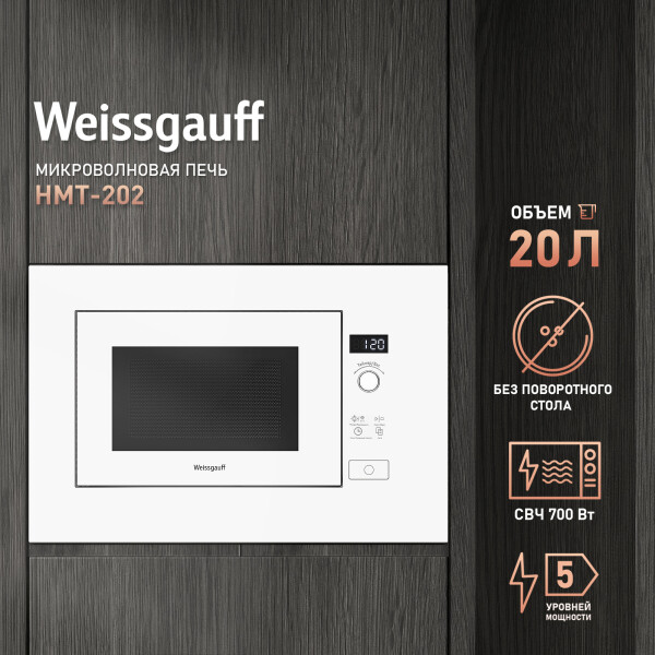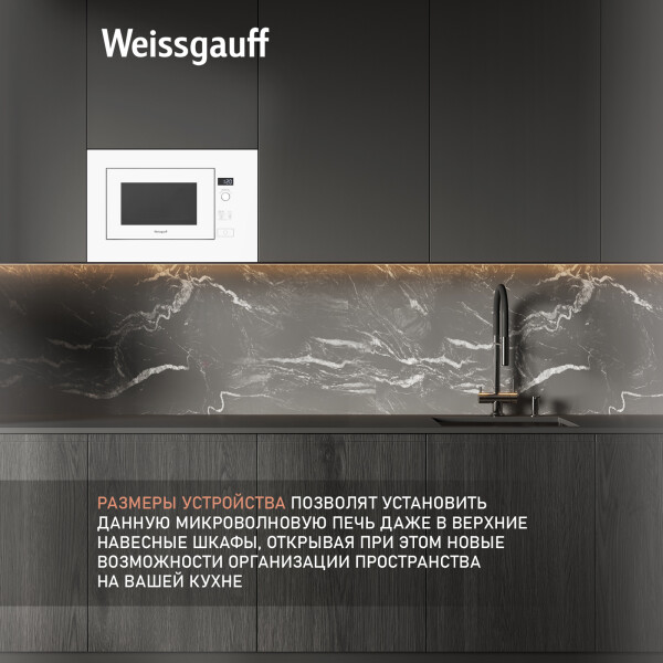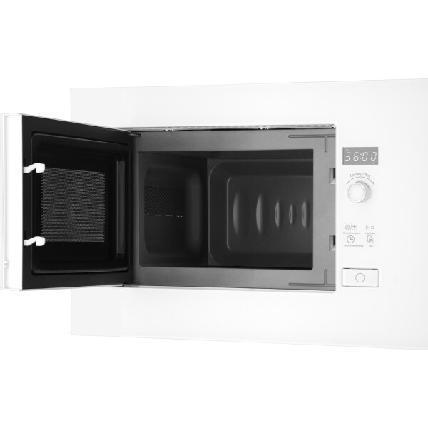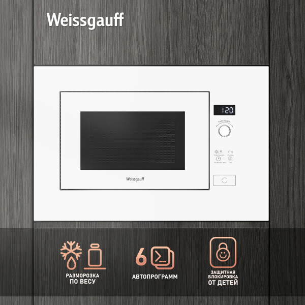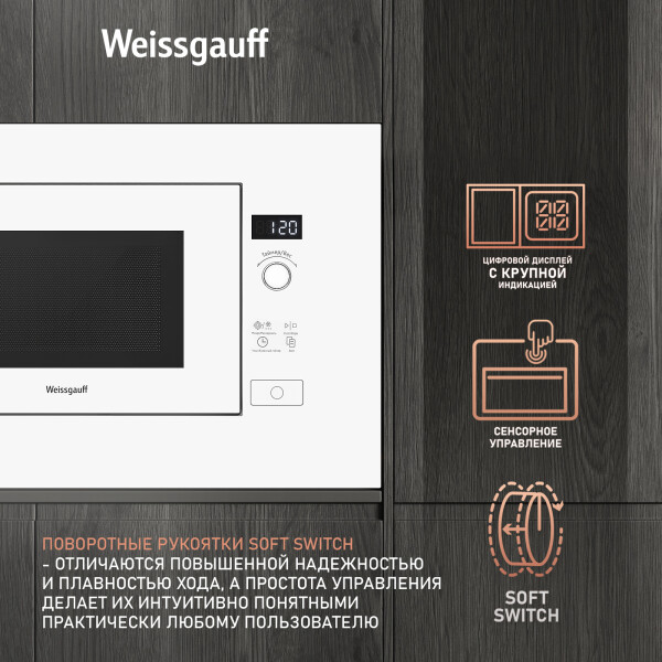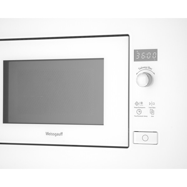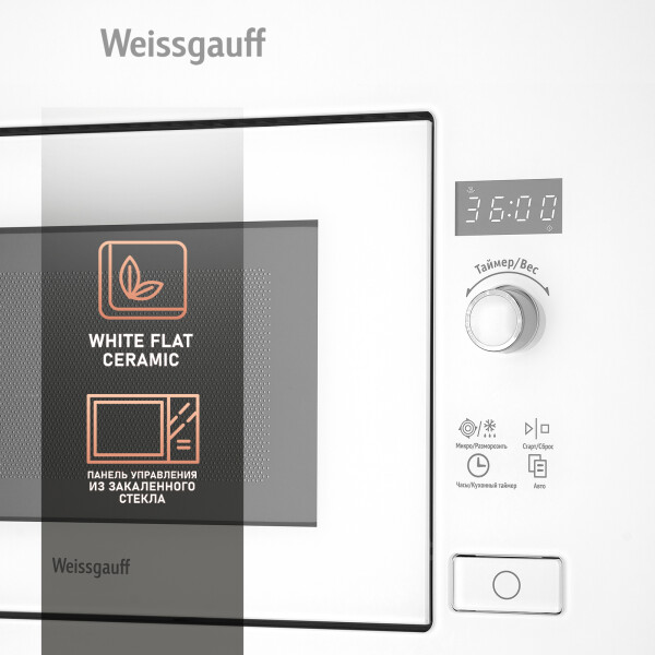 Встраиваемая микроволновая печь Weissgauff в белом цвете равномерно разогревает еду без поворотного стола, благодаря системе Spiegel и биокерамическому покрытию White Flat Ceramic.