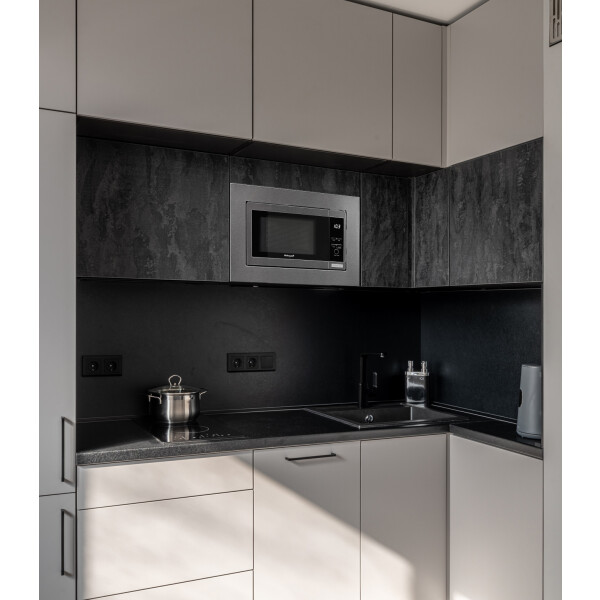 Компактная глубина даёт возможность встраивать данную модель даже в самые небольшие шкафы, в том числе и верхние навесные.