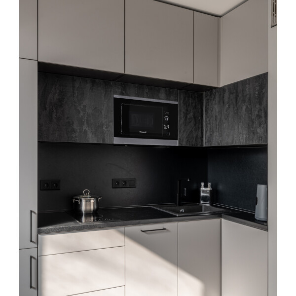 Компактная глубина позволит встроить СВЧ даже в самые небольшие шкафы, в том числе и верхние!
