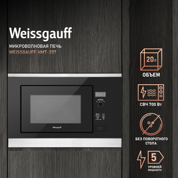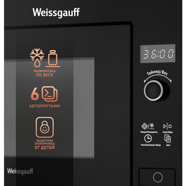 Производитель уделил особое внимание внутренним особенностям камеры данной микроволновой печи, сделав её максимально простой в уборке. Сочетание эмали лёгкой очистки и биокерамического дна гарантирует вам отсутствие возможных зазоров, люфтов и зон, в которых может скапливаться грязь и остатки еды. Для ухода за моделью вполне достаточно протирать её изнутри после окончания разогрева пищи. Встраиваемая СВЧ от Weissgauff прослужит вам долгие годы, радует своим качеством исполнения и немецкой безотказностью.