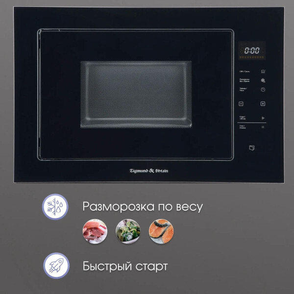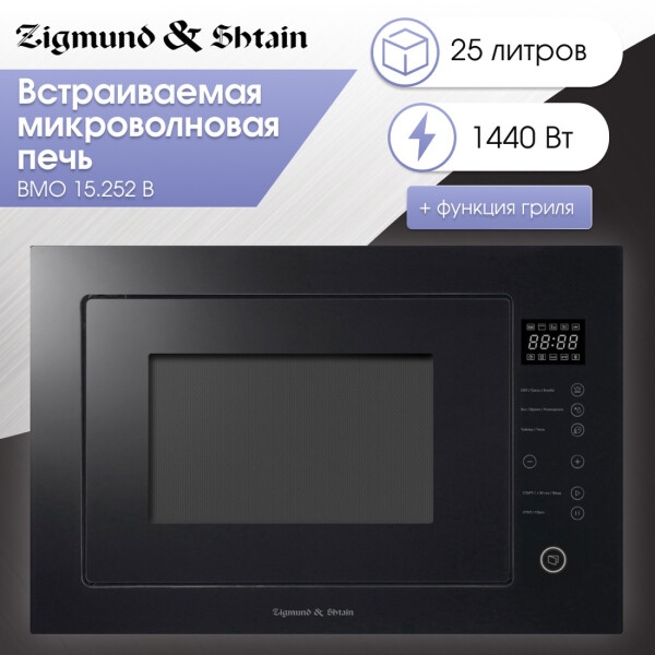 Встраиваемая микроволновая печь Zigmund & Shtain BMO 15.252 B черного цвета дополнит любой интерьер, а также быстро войдет в обиход, позволяя сэкономить большое количество времени. Мощность микроволн этой модели - 900 Вт при общем ее энергопотреблении в размере 1450 Вт. Присутствует функция гриля. Объем внутренней камеры составляет 25 литров, что делает эту СВЧ-печь хорошей альтернативой стандартной газовой или электрической духовке.
