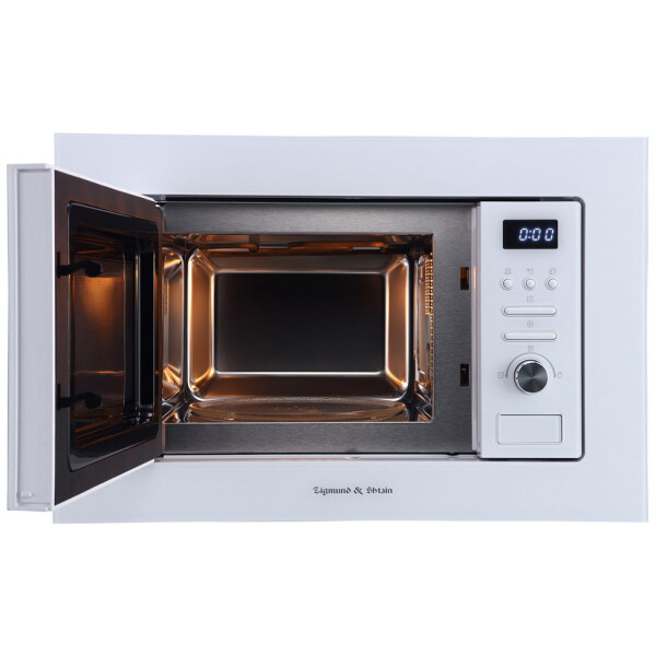 Открывание дверцы происходит с помощью кнопки, которая позволяет открыть доступ к камере без особых усилий. С помощью дисплея и кнопок можно задать режим и время работы микроволновой печи. Имеются такая функции, как блокировка от детей и разморозка продуктов. Подсветка камеры микроволновой печи Zigmund & Shtain Zigmund & Shtain BMO 16.202 W позволит без лишних хлопот проверить готовность блюда визуально.