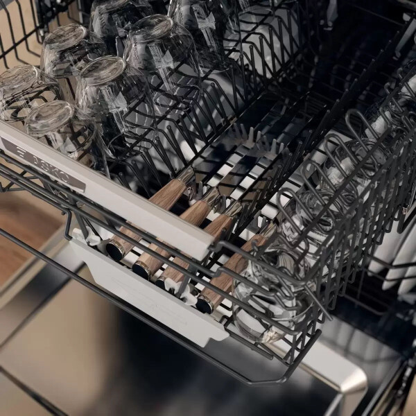 Ключевые элементы конструкции выполнены из нержавеющей стали, что обеспечивает надежность и долговечность, а система корзин Flexiracks создана таким образом, чтобы можно было изменять ее элементы, подстраивая под посуду самых разнообразных габаритов: переставлять верхний короб, складывать направляющие и т.д.