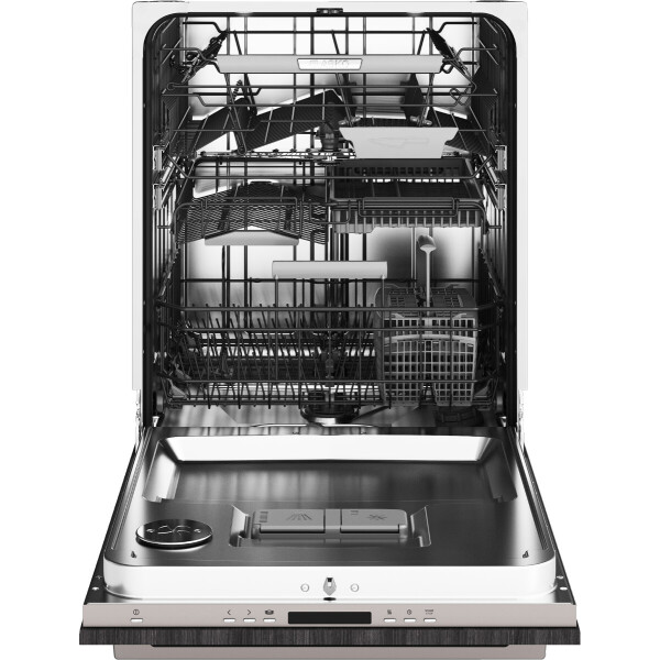 Программ в памяти машинки содержится 13 и они рассчитаны на самые неординарные ситуации и материалы. Есть специальные режимы для пластика и хрусталя, опция мытья только в одной из корзин, быстрый цикл, а также система самоочистки, помогающая поддерживать чистоту прибора. Панель управления оборудована дисплеем и многочисленными индикаторами, которые сообщат о необходимости добавить соль или ополаскиватель. Поскольку она скрыта во время работы, специальный световой сигнал StatusLight транслируется на пол.