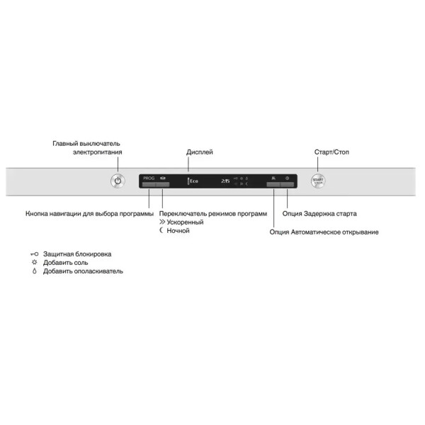 Полностью встраиваемая посудомоечная машина Asko DSD433B выполнена в цвете «титан». Серия Logic отличается удобной панелью управления с дисплеем FSTN, на котором отображается вся необходимая информация: режимы и программы. Программ у модели 7: интенсивная, Quick Pro, Eco, ежедневная, гигиеническая 70°C, по времени, полоскание. Бесщеточный мотор BLDC обеспечивает улучшенную энергоэффективность и тихую работу.