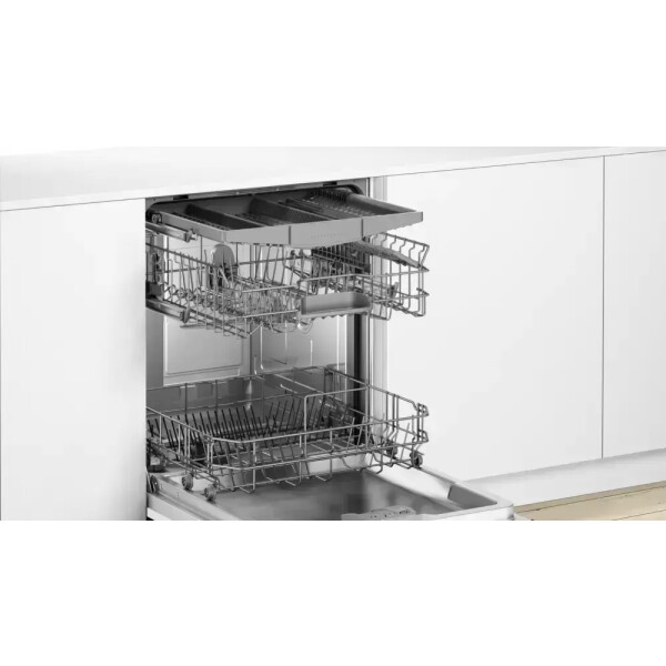 Вместительный выдвижной ящик VarioDrawer позволяет обойтись без отдельной корзины для столовых приборов, обеспечивая оптимальное использование пространства - теперь есть возможность разметить до 14 комплектов посуды (в моделях шириной 45 см - до 10 комплектов)