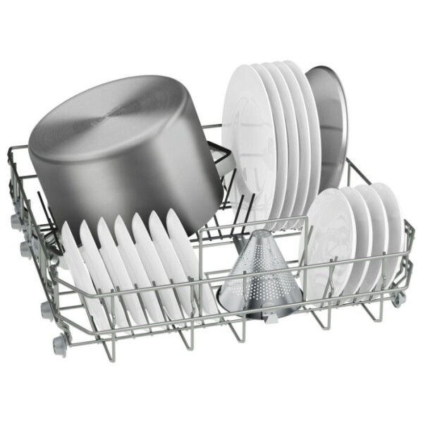 Встраиваемая посудомоечная машина Bosch SMV45EX00E имеет стильный дизайн и хорошие характеристики. Удобное управление, конденсационная сушка, есть корзина.