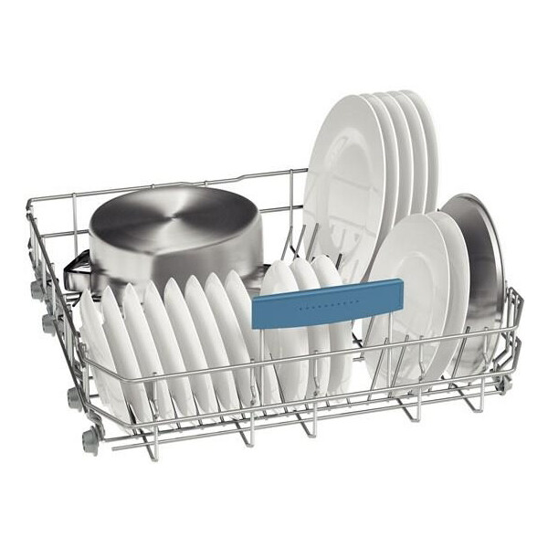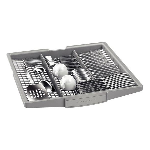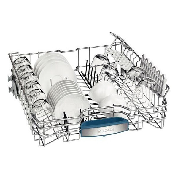Эта посудомоечная машина бренда Bosch отличается большой вместительностью, а также экономичным потреблением воды и электричества. Так, за один полный цикл работы устройство может вымыть до 13 комплектов посуды, благодаря чему на устройство стоит прежде всего обратить внимание большим семействам. Впрочем, программная часть предусматривает также и специальный режим половинной загрузки. Bosch SMV 58L60 оборудована удобной панелью управления с ярким дисплеем и специальным напольным лучом, благодаря которому легко определить работает устройство или программа уже завершена. Средний расходы води находится на уровне 8 л, а энергопотребление соответствует классу A++.