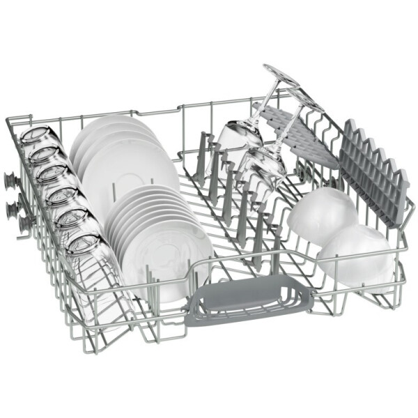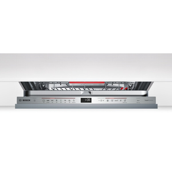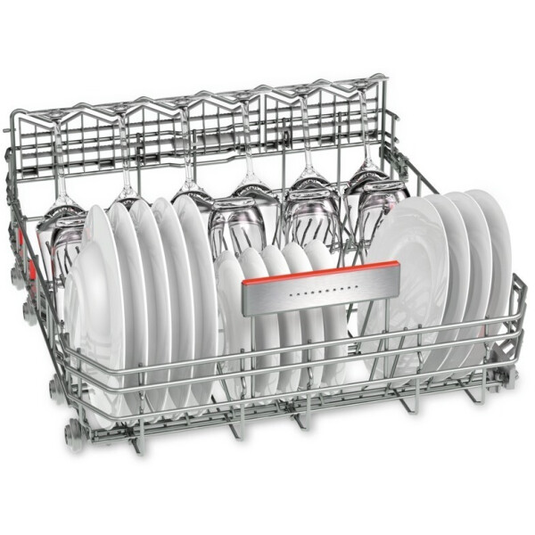Полногабаритная посудомоечная машина от немецкого концерна Bosch, в программном обеспечении которой применены передовые технологии, что позволяет обеспечить идеальную чистоту посуды и помогает экономить деньги на коммунальных платежах. Благодаря низкому расходу воды (6,5 л) и классу энергопотребления А++ эта кухонная помощница максимально сократит расход ресурсов, затрачиваемых на мойку. Технология AquaSensor представляет собой ряд датчиков, которые контролируют степень загрязнения. Это позволяет выбрать оптимальную температуру воды и ее количество для достижения высокого результата работы. К основным плюсам посудомоечных машин Bosch SMV SMV68UX04E относят следующие возможности: Extra сушка дополнительная операция, применяемая для более эффективного процесса высыхания посуды; программа Стекло 40C, специально разработанная для идеального мытья и блеска изделий из стекла; система VarioFlex Pro, позволяющая регулировать положение лотков для посуды для достижения максимального удобства загрузки; функция TimeLight, которая сигнализирует об активном режиме с помощью точки света перед дверцей машины. Эта модель кухонной техники имеет 6 различных программ мытья и способна вместить 13 комплектов посуды одновременно. Оборудованная запатентованным приводом EcoSilence Drive посудомойка работает с минимальным уровнем создаваемого шума, что достигается за счет отсутствия щеток в устройстве двигателя.