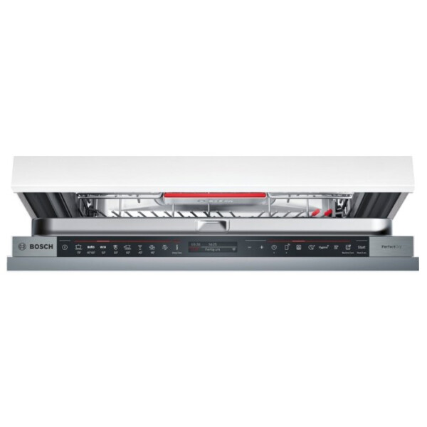 Продвинутая модель современной посудомоечной машины. Предусмотрена надежная защита от протечек AquaStop, которая реагирует на малейшую протечку, после чего моментально блокирует поступление воды и отключает технику; защита установлена на корпус, шланги подачи воды и другие элементы. Встроенный сенсор чистоты AquaSensor позволяет в полностью автоматическом режим достичь максимально эффективного использования воды Bosch SMV 88TX36 закончит программу, как только определит, что посуда уже чистая. Также устройство отличается наличием проецируемого светового экрана, на котором идет отчет времени до окончания мойки это поможет следить за циклом просто заглянув на кухню. Максимальная вместимость рабочей камеры составляет 13 комплектов, при этом средний расход воды на один полный цикл составляет скромные 7.5 литров. Что же касается расхода электричества, то оно вовсе на экономном уровне класса А+++. Посудомоечная машина имеет функцию защиты от детей, автодоводчик дверцы и подсветку камеры. Отдельного внимания заслуживает возможность управления через интернет с помощью фирменного программного обеспечения. Это позволяет машине отправлять различные сообщения, например, о расходе средства, окончании мойки.