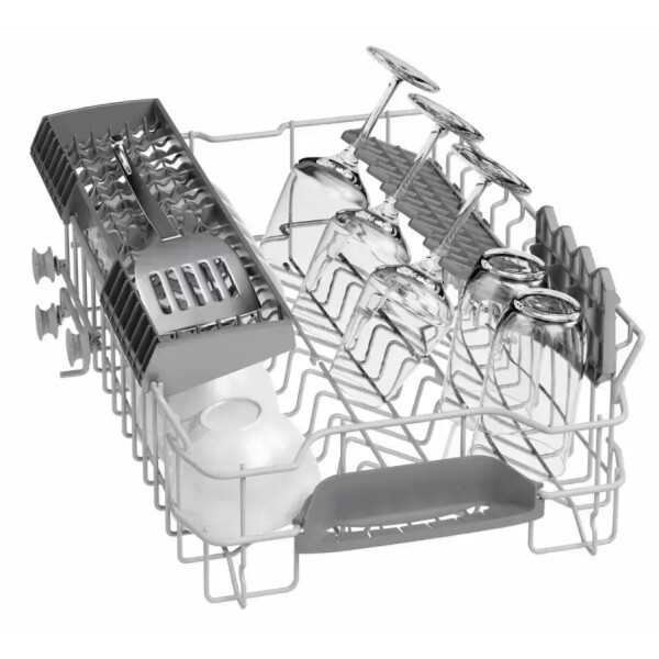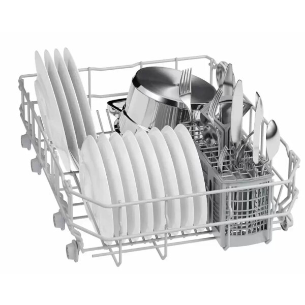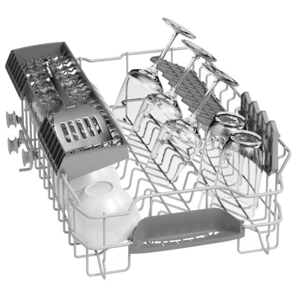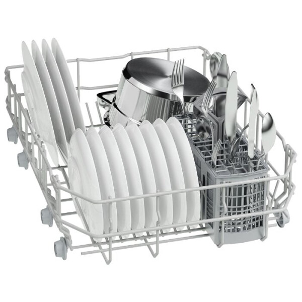 Модель Bosch SPV25CX01R рассчитана на загрузку до 9 комплектов посуды, расход воды при этом составит 8.5 литров. Машина оснащена 5 автоматическими программами мойки, среди которых есть ускоренная и экономичная. Кроме того, предусмотрен специальный режим для бережной очистки хрупкой посуды. Модель имеет частичную защиту от протечек, а также исключает вмешательство маленьких домочадцев. О завершении работы сообщит специальный звуковой сигнал.