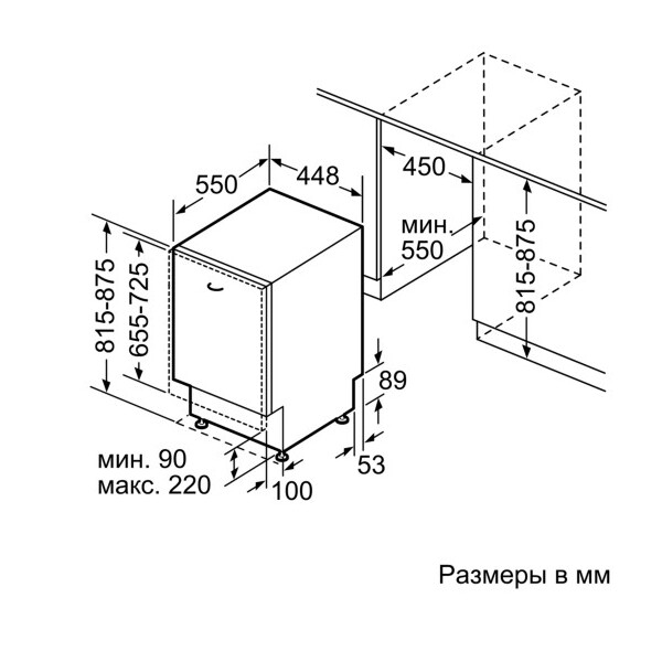 | Ширина встраивания | 45