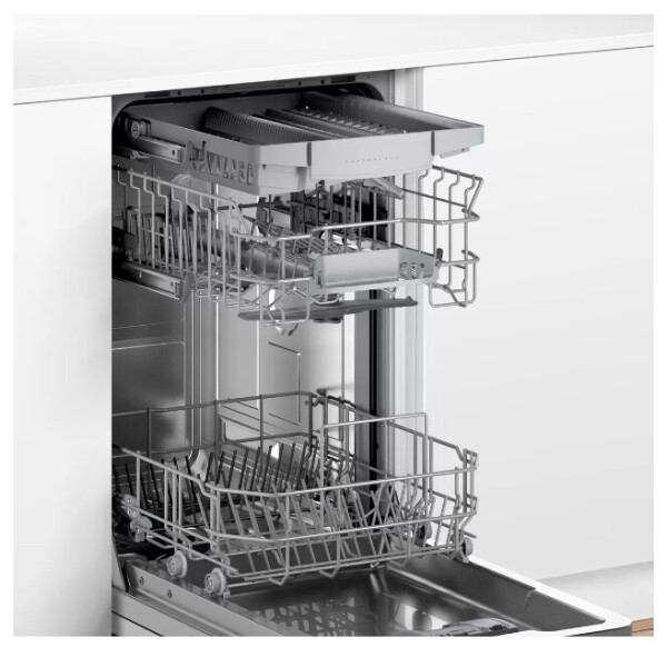 Узкая встраиваемая посудомоечная машина cбережет драгоценное время и поместится даже на небольшой кухне. Пять уровней распределения воды обеспечат превосходный результат мытья.