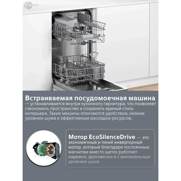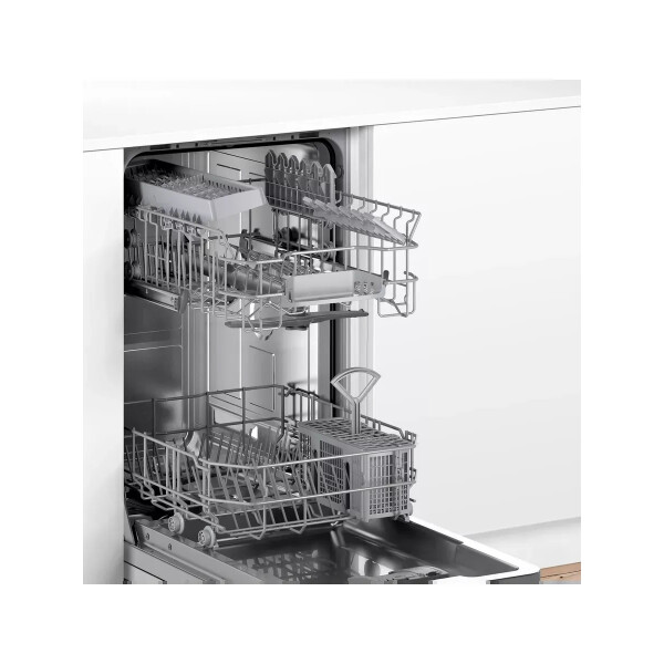 Встраиваемая посудомоечная машина Bosch SPV2IKX10E сочетает технологичность, надежность и лаконичный дизайн. В посудомоечной машине реализован ряд фирменных технологий. PerfectDry на основе натурального минерала Zeolith: идеальные результаты сушки с меньшим использованием энергии даже для посуды, которая трудно сушится. Модель оборудована 5 программами и вмещает до 9 комплектов посуды. Выдвижной ящик позволяет разместить все необходимые столовые приборы и бокалы. Комплексная система AquaStop защищает от протечек воды как внутри прибора, так и в случае разрыва заливного шланга.