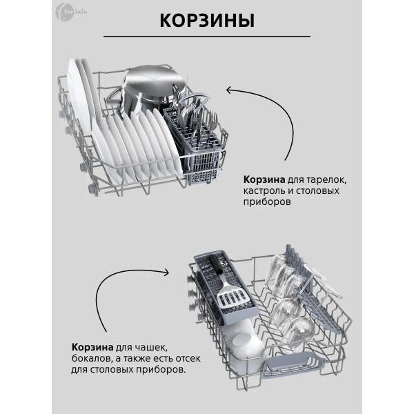 Посудомоечная машина может подключаться к системе Умный дом через мобильное приложение Home Connect. Мобильное приложение Home Connect позволяет управлять посудомоечной машиной через смартфон или планшет. Приложение поможет выбрать необходимую программу и управлять машиной тогда, когда это удобно вам. Extra Dry: дополнительная функция для особенно интенсивной сушки пластиковой и стеклянной посуды. Верхний короб, регулируемый по высоте: обеспечивает дополнительное место, например, для высокой посуды. Push сообщения - получайте информацию о статусе программы и текущее состояние прибора непосредственно на мобильное устройство.